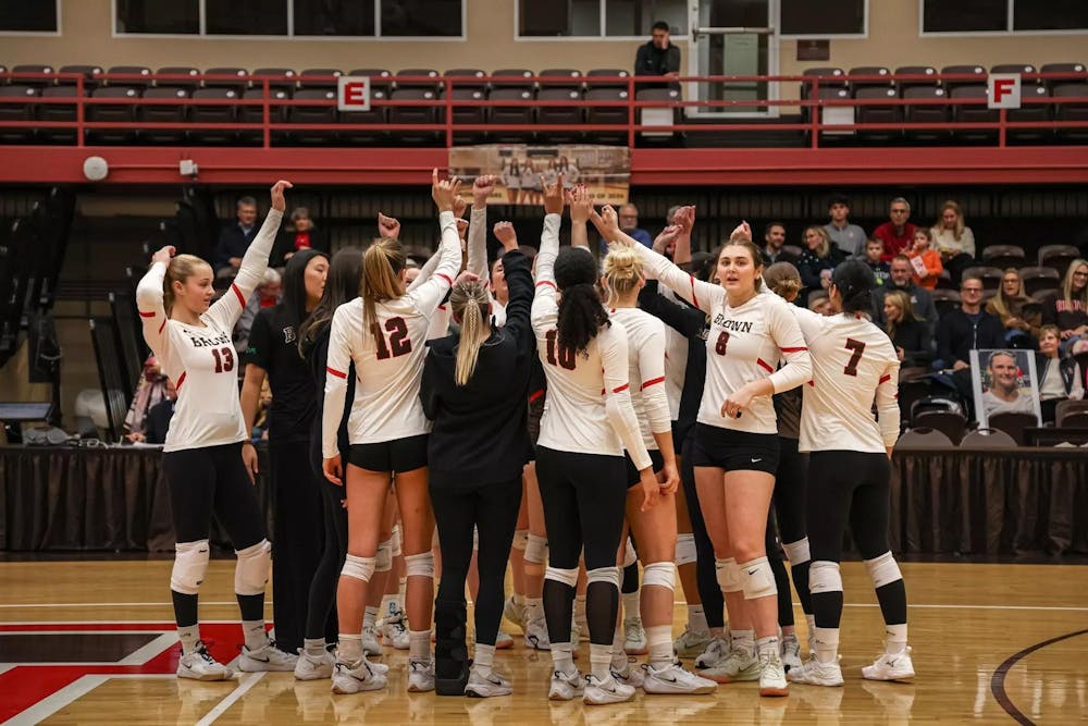 The women’s volleyball team was swept 3-0 by Princeton in the Ivy League Tournament semifinals on Friday night for the second year in a row. Despite the loss, the team delivered a strong season. Courtesy of Brown Athletics.