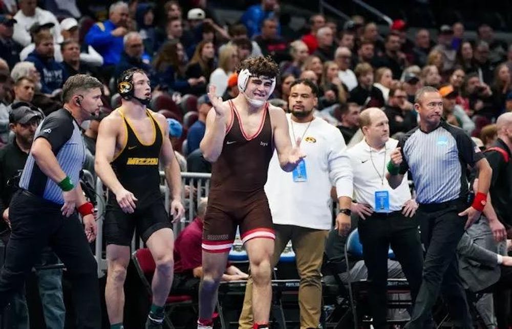 Although the trio fell short of reaching the national podium, Andrew Reall and Austin McBurney ’26 scored upset victories against higher-ranked opponents.