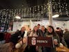 Brown students and alums pose with Brown banner at community gathering. The gathering was one of many hosted following the Dec. 13 mass shooting. Photo Courtesy of Cliff Saper.