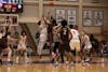 N'famara Dabo '27 at the tip-off against Cornell. Despite winning the opening tip, the Bears failed to convert, and Columbia opened the game with a three-pointer.