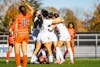 When play resumed in the second half, the Bears pounced first with Ayla Sahin ’28 sending the ball low toward the center of the goal.