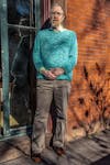 Mariah Min, an assistant professor of English, wearing her favorite item: a bomber jacket with pomegranates embroidered on it. The jacket makes her feel “artsy and quirky,” she said.
