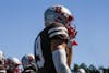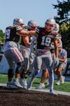 Tyler Pezza ’26 (right) celebrates a play with teammates in the first quarter of Saturday’s game. Three minutes into Saturday’s game, Qwentin Brown ’26 punched home the Bears’ first touchdown ...