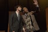 Avi Levin ’26 and Mikai Spencer ’26 as Steven Kodalv and Mr. Maraczek in “She Loves Me.”